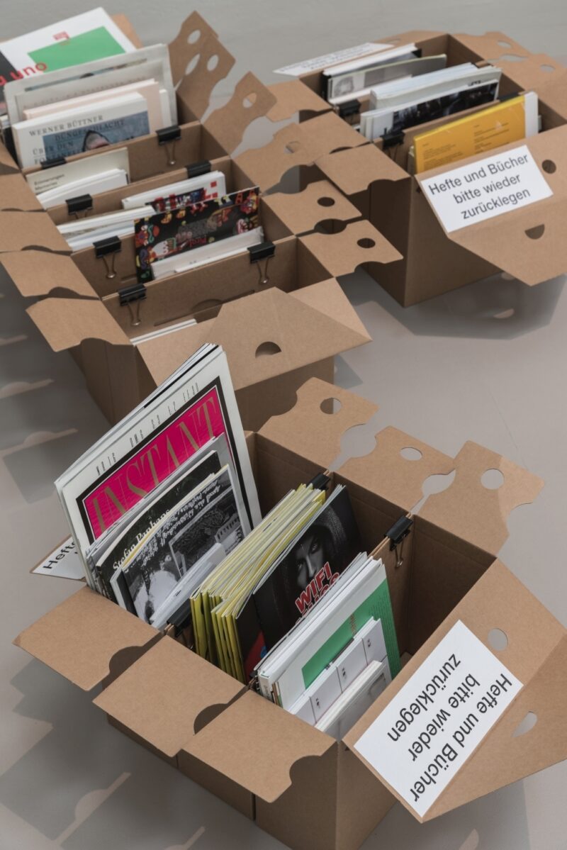 Von Oktober 2018 bis Juni 2019 ist das Archiv Künstlerpublikationen „Archive in Residence“ in der Archiv Galerie des Haus der Kunst. Die Ausstellung bildet den Auftakt einer Reihe von Präsentationen, die autonome Archive vorstellt und Fragen über das Verhältnis von Archiv, Geschichte und ihrer Repräsentation diskutiert.