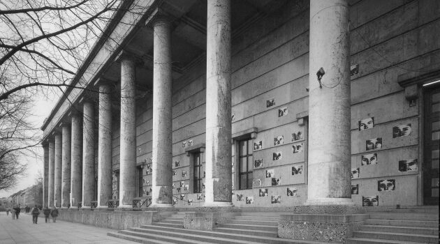 Die zweite Präsentation der Archiv Galerie im Haus der Kunst legt den Schwerpunkt auf Interventionen in die Architektur und den Umgang mit der Fassade des 1937 als "Haus der Deutschen Kunst" errichteten Gebäudes. Mit "Résistance" von Christian Boltanski (1993/94) und Gustav Metzgers "Travertin/Judenpech" von 1999 reaktiviert das Haus der Kunst die ersten zwei künstlerischen Auseinandersetzungen, die eigens für die Fassade und den Säulengang des Gebäudes konzipiert wurden.