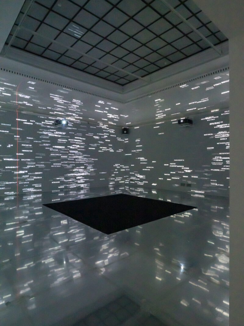 Im Mittelpunkt der Ausstellung stehen drei eigens konzipierte Installationen, die sich mit der Art und Weise auseinandersetzen, wie digitale Medien und Technologien heute einen prägenden Teil der Lebenserfahrung darstellen. In ihnen verschmelzen Vergangenheit und Zukunft, Sehnsucht und Verzweiflung. Indem die Ausstellung mehrerer vergangener Performances groß angelegt und multimedial neu interpretiert – eine immersive, spektakuläre Installation, die die Banalität einer durch künstliche Intelligenz generierten Sprache erforscht, wie auch eine opernhafte Klangskulptur aus Feldaufnahmen, von Ryuichi Sakamoto eigens für das Haus der Kunst geschaffen – fordert sie Betrachter*innen zum aufmerksamen Zuhören, Lesen und Zuschauen im Wechsel auf. Dadurch wird ein Zustand der Liminalität ("ma" auf Japanisch) erzeugt, ein Zustand der Trägheit oder des Nichts, der sich hauptsächlich aus einem Übermaß an Bedeutung ergibt. Dies ist ein zentraler Aspekt vieler Arbeiten, die die Auswirkungen der digitalen Technologie und des menschlichen Bewusstseins hinterfragen.