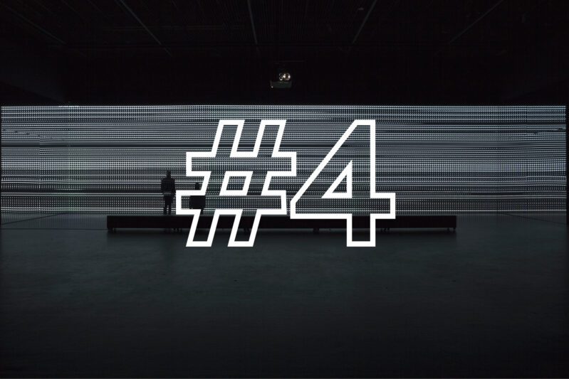 Das Kollektiv Dumb Type kritisiert eine Konsumgesellschaft, die durch die ständige Daten- und Technologieflut „dumb“ gemacht wird. Der Name spielt auf die englische Doppeldeutigkeit des Begriffs an: dumm bzw. sprachlos. Eine ihrer Installationen lässt Besucher*innen in die Banalität eines durch künstliche Intelligenz geschaffenen Wort-Clusters eintauchen.