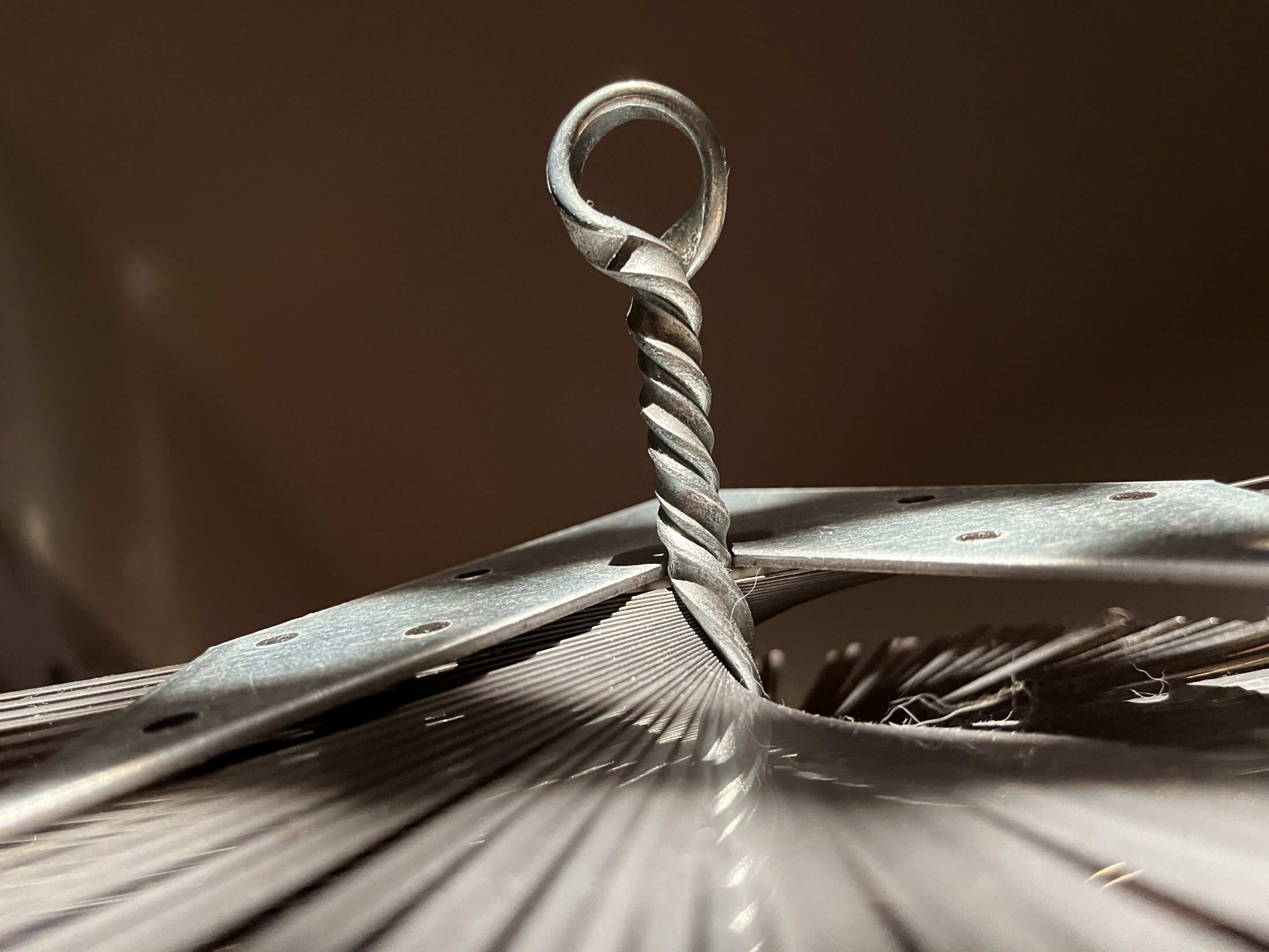 Für ihr Klanggerät in dieser Installation kombiniert Hazina sehr unterschiedliche Materialien. In der Holzkiste befinden sich Gegenstände und Werkzeuge, darunter Küchengeräte, ein Kaminreiniger aus Metall sowie Eisen- und Holzstücke. Durch die sorgfältige Verkabelung der einzelnen Gegenstände mit piezoelektrischen Sensoren wird das physische Instrument zu einem elektronischen, das analoge Klänge in digitale atmosphärische Sounds umwandelt. Durch den geschickten Einsatz von Gitarrenpedalen und digitalen Effekten dehnt sich jeder kleine Klang aus und breitet sich im umgebenden Raum aus.