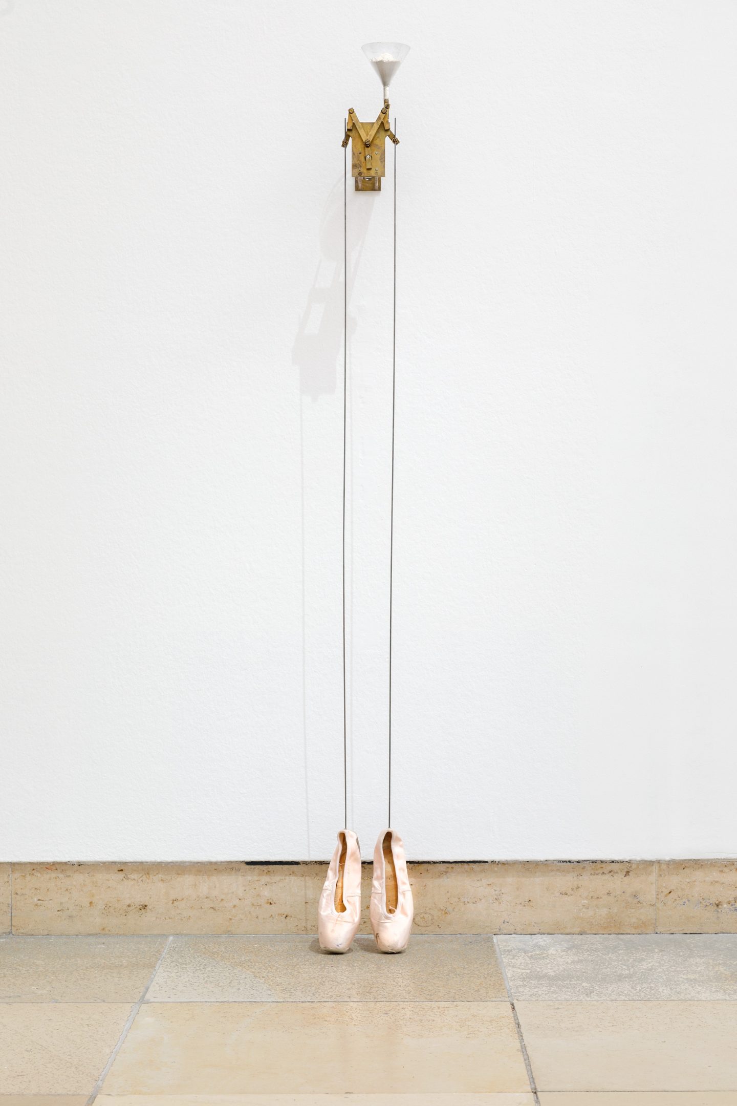 The performances expose the human body to processes through which embodied knowledge is generated. Extensions such as the Head Balance (1972) and Moveable Shoulder Extensions (1971) allow for extraordinary physiological experiences. Other objects, such as Head Extension (1972), require several people to maintain the balance of the performers. Through the traction exerted by cords, one’s own posture is balanced between control and self-control. In this way, reality and the imaginary intertwine in physical and movement images that trigger contemplation, perception, and memory. With these historically significant performances, the artist addresses the human body as a repository of knowledge, and also consciously addresses the body’s memory, as it is practiced in dance technique. Movement thus becomes an experience that is already decoded in the process of its encoding. Horn defines the execution of the movement but seeks individual information about the body. The focus is on a poetic and social understanding of the body that reveals its relationship to the influences that shape it, while at the same time allowing them to be suspended.